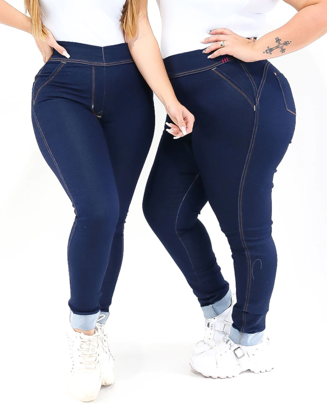 Com tecido de alta elasticidade, é uma calça jeans que estica muito, sem zíper e sem botão, garantindo praticidade e ajuste impecável ao corpo.