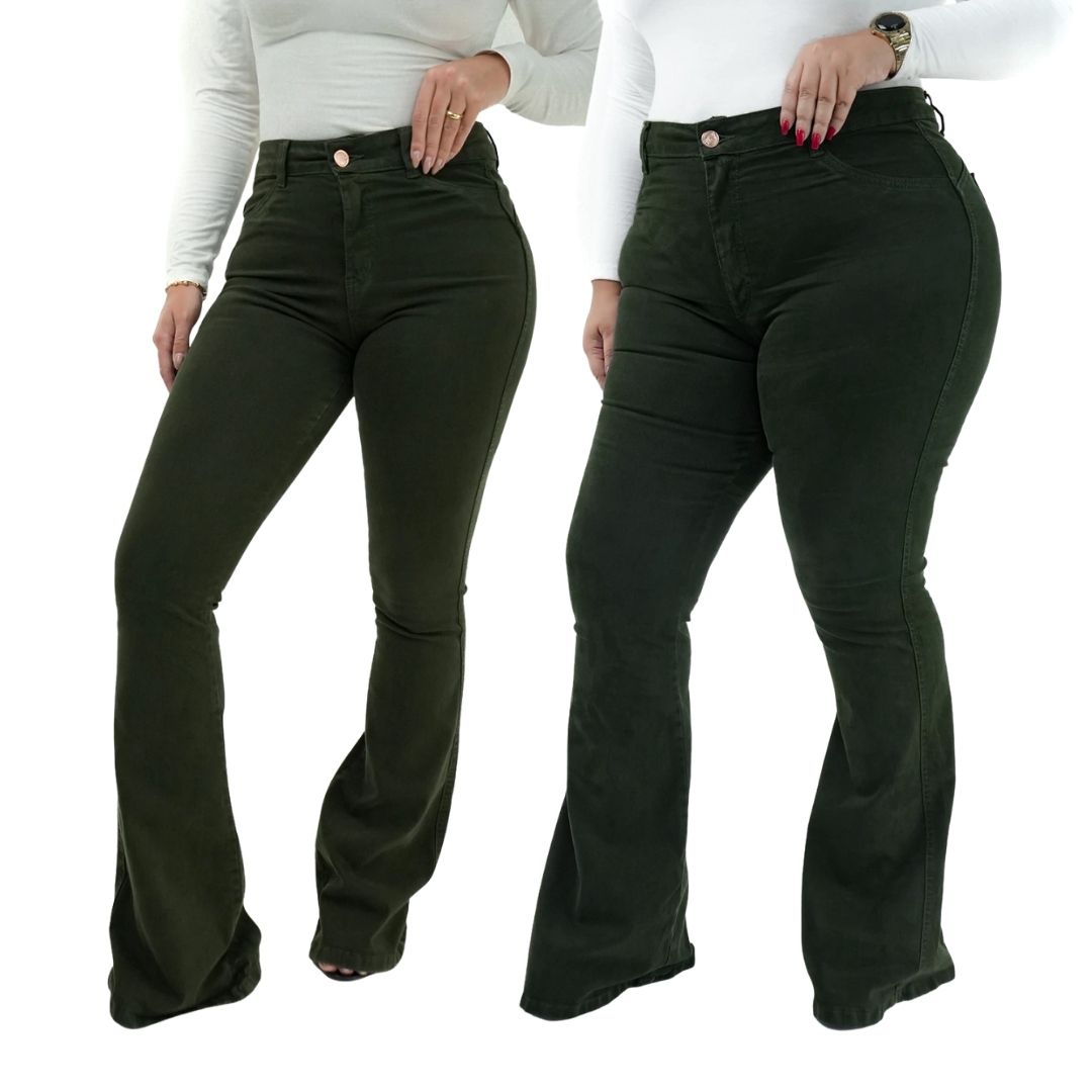 A Calça Jeans Feminina Flare Verde Militar da BEIDÊ é perfeita para quem busca estilo, conforto e um toque moderno em uma peça atemporal. Com modelagem flare e cintura alta, valoriza a silhueta e alonga visualmente as pernas, garantindo caimento impecável.