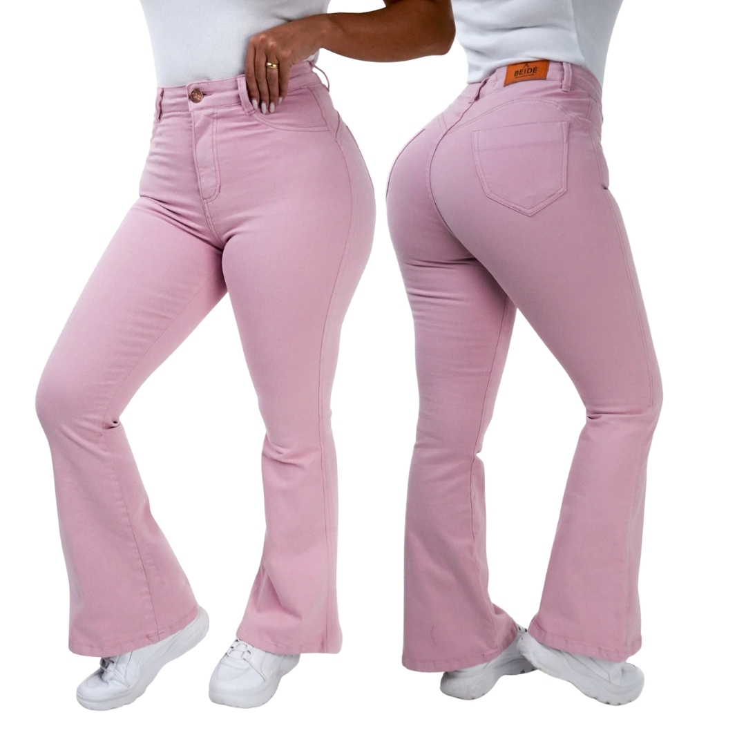 A modelagem flare alonga visualmente a silhueta, enquanto a tonalidade rosa bebê traz delicadeza, leveza e um toque atual ao look. Ideal para quem busca estilo e praticidade no dia a dia, sem abrir mão de conforto e elegância.