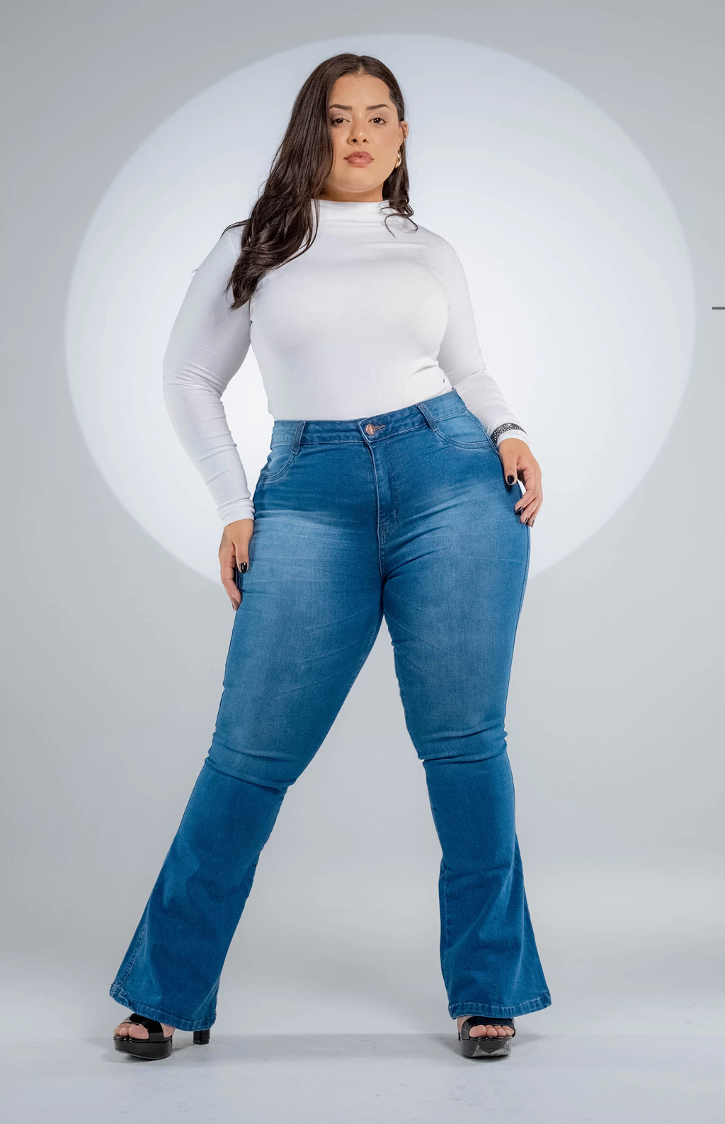 A Calça Jeans Flare Sky da BEIDÊ é perfeita para quem busca um visual moderno, alongado e cheio de estilo. Com cintura alta e modelagem flare, valoriza a silhueta e garante um caimento impecável que alonga visualmente as pernas.