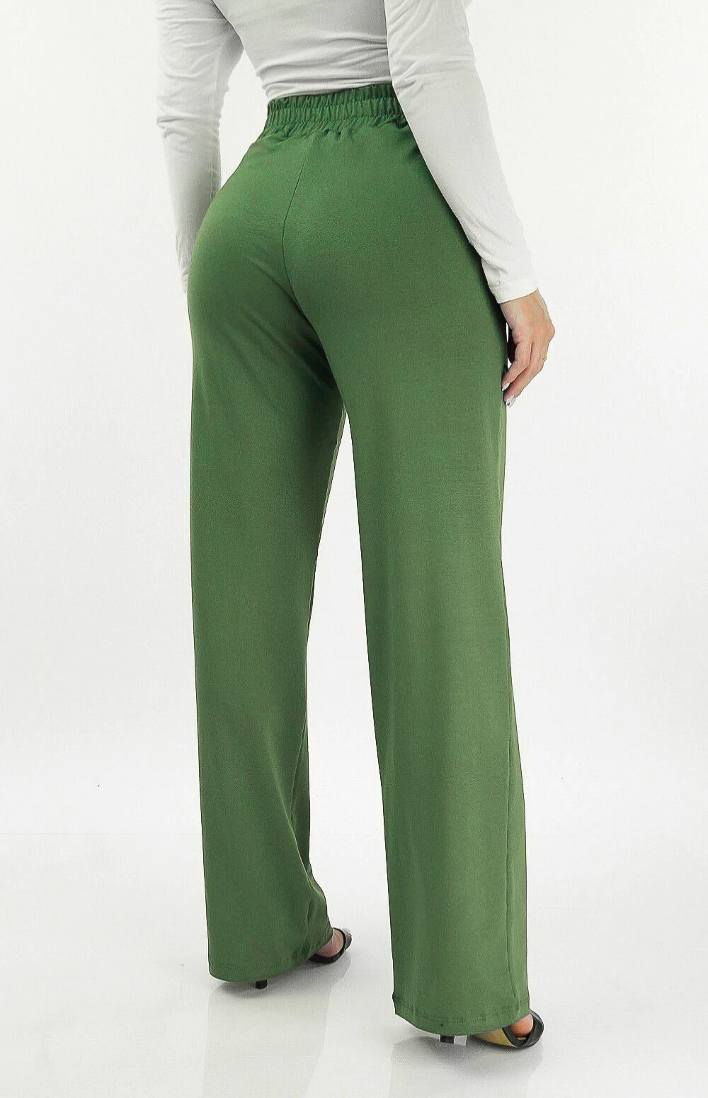 A Calça Pantalona BEIDÊ foi confeccionada em moletinho de viscose acetinado com toque